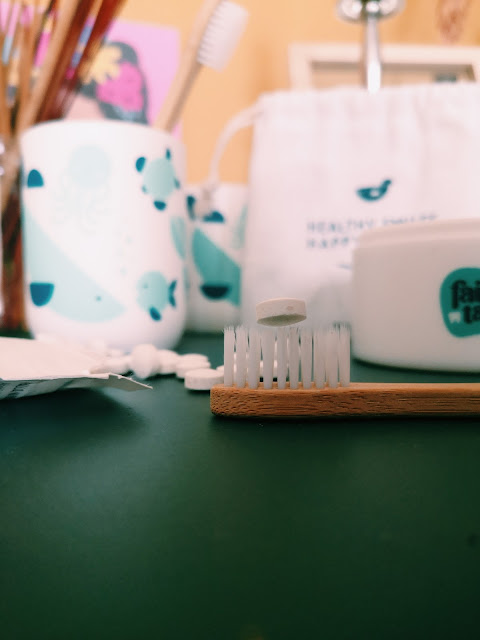 Wanneer je mij wat langer volgt, weetje wellicht ook dat ik zo veel mogelijk "fijnere" keuzes probeer te maken. Fairytabs sluit dus perfect aan bij onze leefstijl. Al een tijdje waren wij opzoek naar een goede tandpasta zonder rommeltjes erin. Toch bleef ik uitkomen bij plastic tubes. Fairytabs doet hier niet aan mee. Peter, de oprichter van Fairytabs en tevens vader van drie kids besloot dat het anders moest en kon dan de reguliere tandpasta's. Peter strikes, want Fairytabs zitten vol met natuurlijke ingrediënten om de tandjes van onze mini mensjes gezond te houden, tandplak te verwijderen en gaatjes tegen te gaan + de Fairytabs zijn 100% vegan, gluten, parabeen en sls vrij. Daar worden we intens gelukkig van!